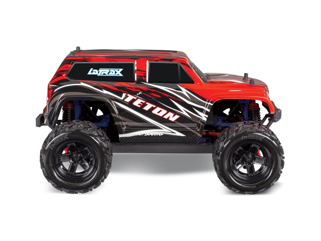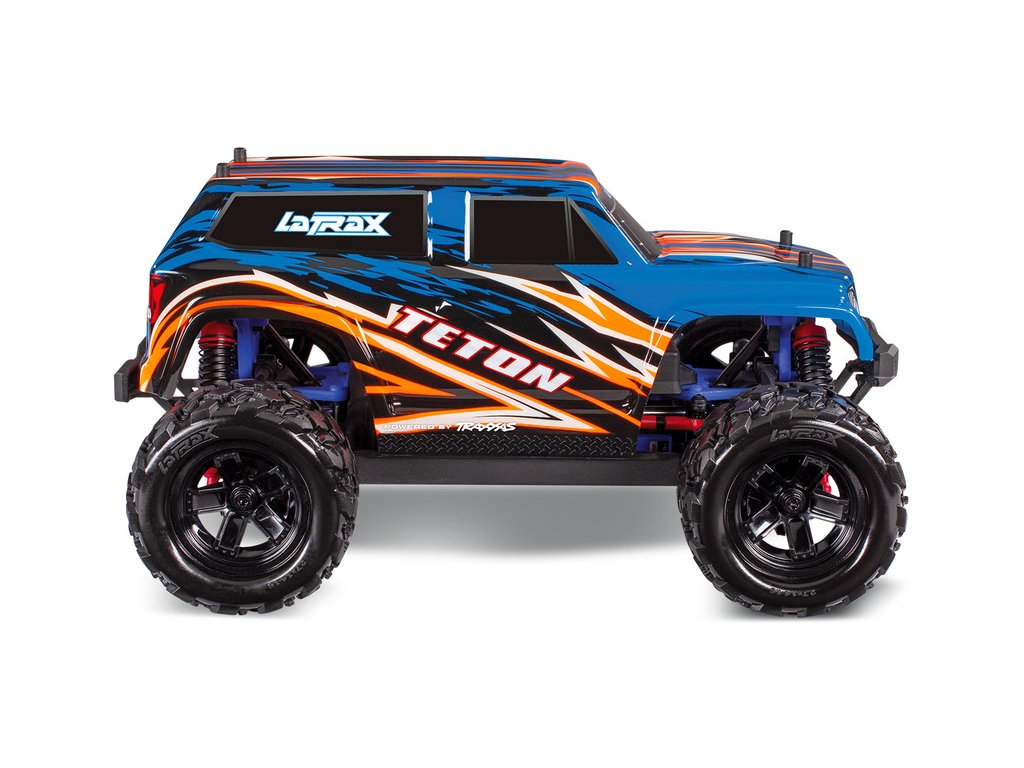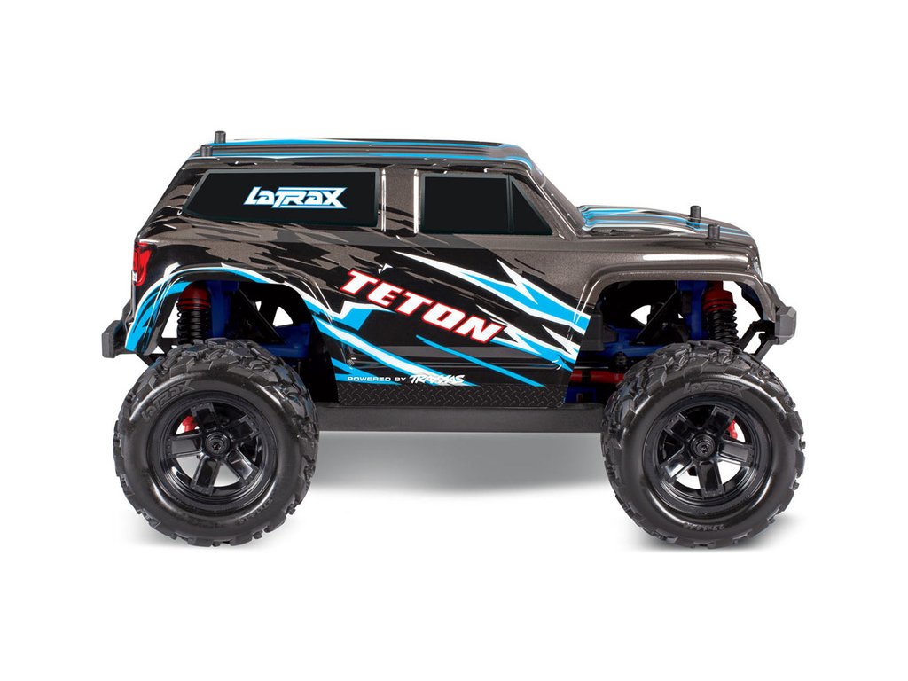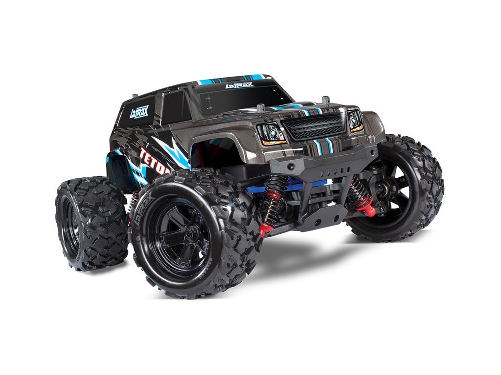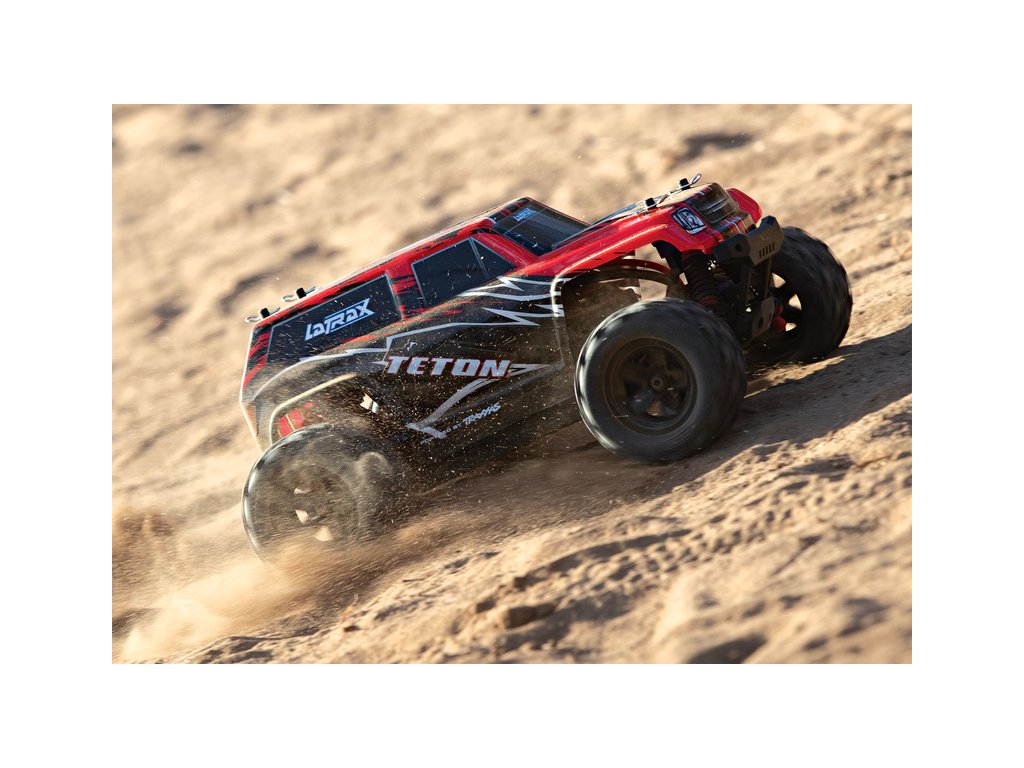 Traxxas Teton je RC model auta na dálkové ovládání v provedení monster trucku v měřítku 1:18. Šasi je vyrobeno z nylonu plněného skelnými vlákny. Díky promyšlené konstrukci se podařilo maximálně snížit jeho těžiště a tím i zlepšit jízdní vlastnosti. Přes své malé rozměry je tento RC model vybaven jako velké auta. Těšit se můžete nezávislé zavěšení kol, odpružení pomocí tlumičů a distribuci výkonu přes přední a zadní diferenciál na poloosy a dále na kola.