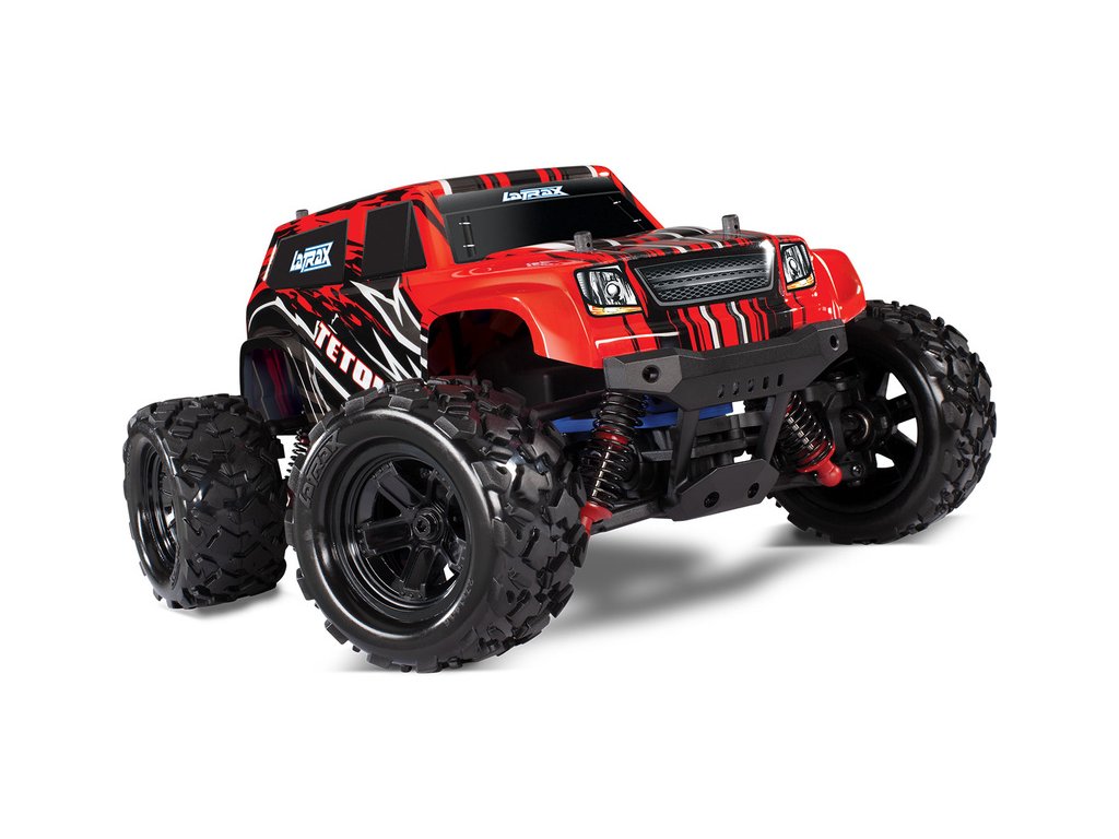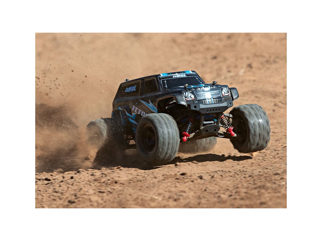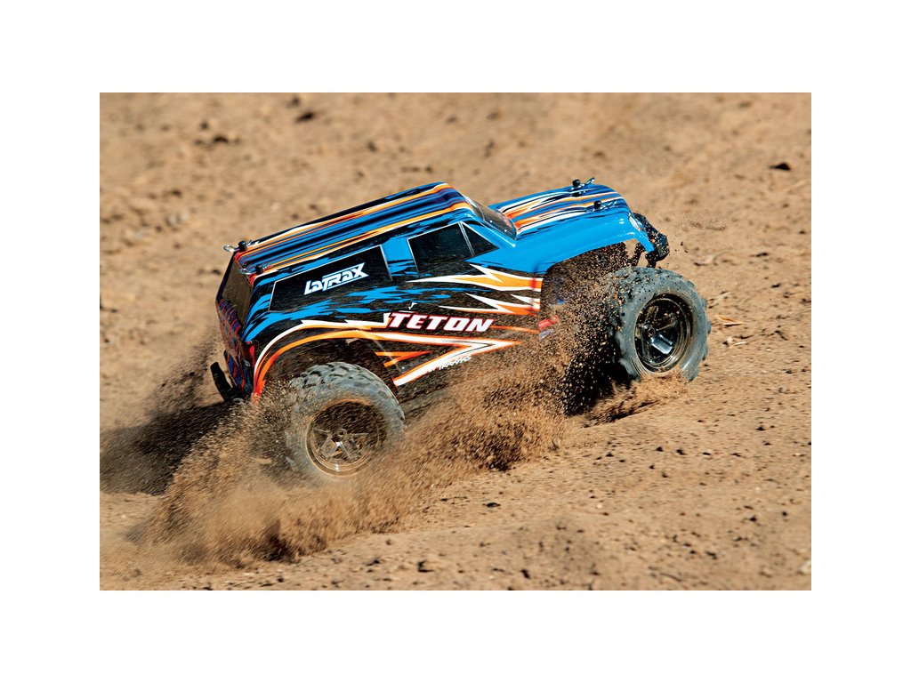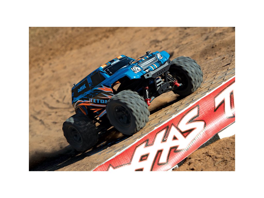 Velmi oblíbený malý a výkonný RC model auta Traxxas Teton. Cenově dostupný off-road monster truck v měřítku 1:18 od značky Traxxas, který nabízí plnohodnotnou zábavu jako u větších modelů. RC model auta Traxxas Teton obsahuje náhon 4WD, přední a zadní diferenciál, nezávislé zavěšení a olejové tlumiče. Vysílač s precizní mechanikou v pásmu 2.4 GHz, přijímač s bezpečnostní funkcí Failsafe, regulátor otáček se 3 jízdními režimy a proporcionální servo řízení. Rychlost až 30 km/h.