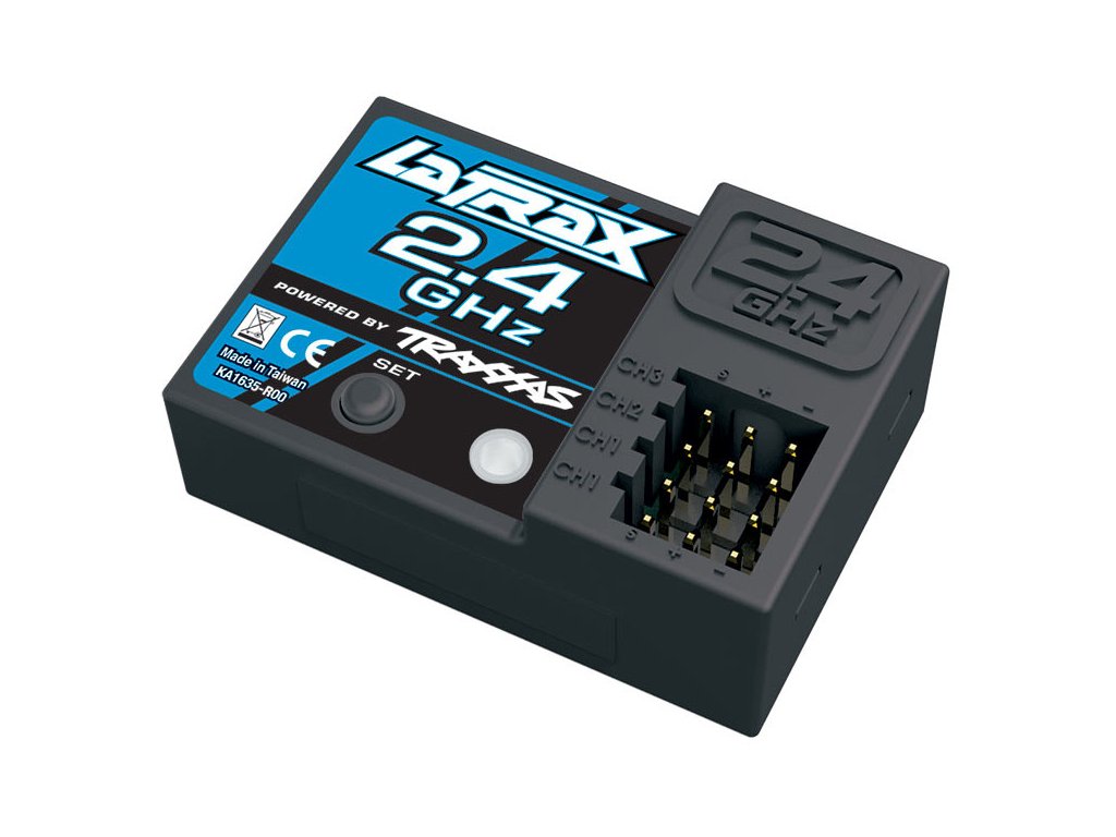 Tří-kanálový přijímač Latrax 2.4 GHz, zajišťuje bezpečné řízení bez výpadků. Snadné spárování jedním tlačítkem. Indikace stavu pomocí LED diody.