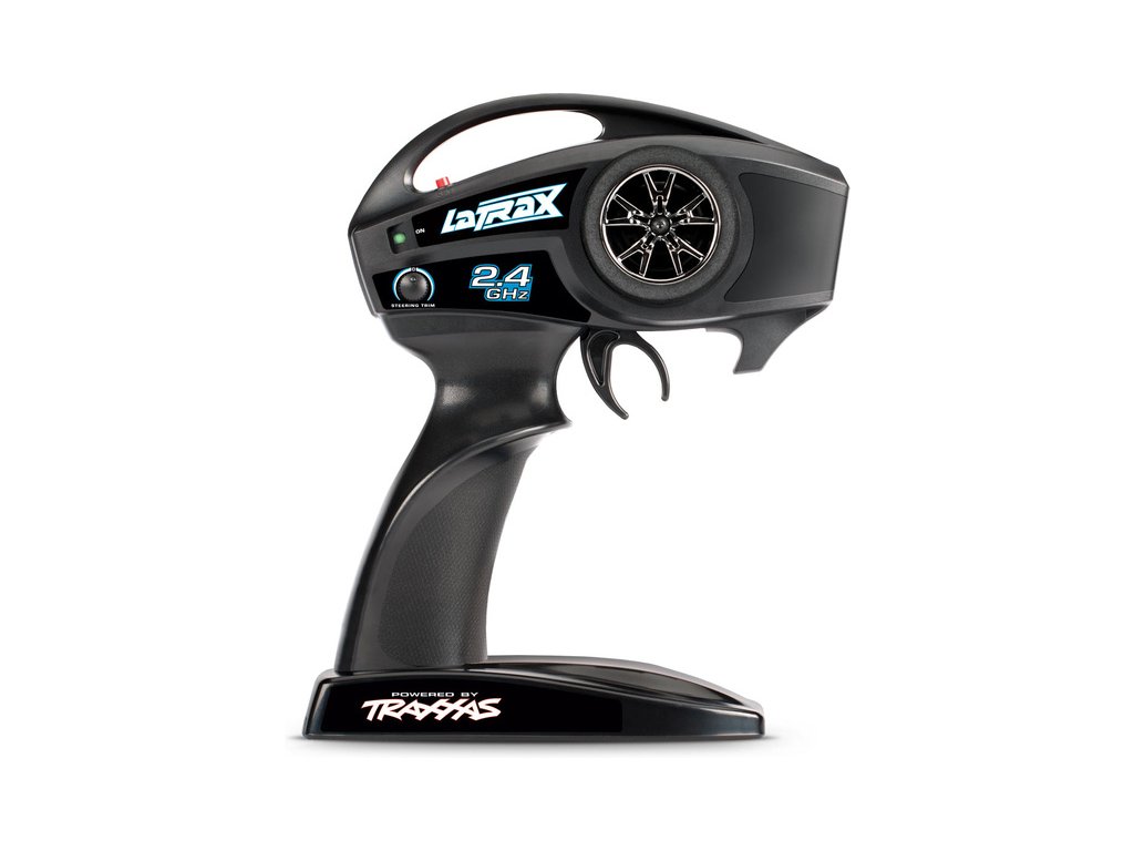 Model je řízen dvoukanálovou proporcionální volantovou RC soupravou LaTrax TQ v pásmu 2.4 GHz - provoz bez rušení. Vysílač je napájen pouze 4 AA články, volitelně můžete použít i nabíjecí NiMH akumulátory.