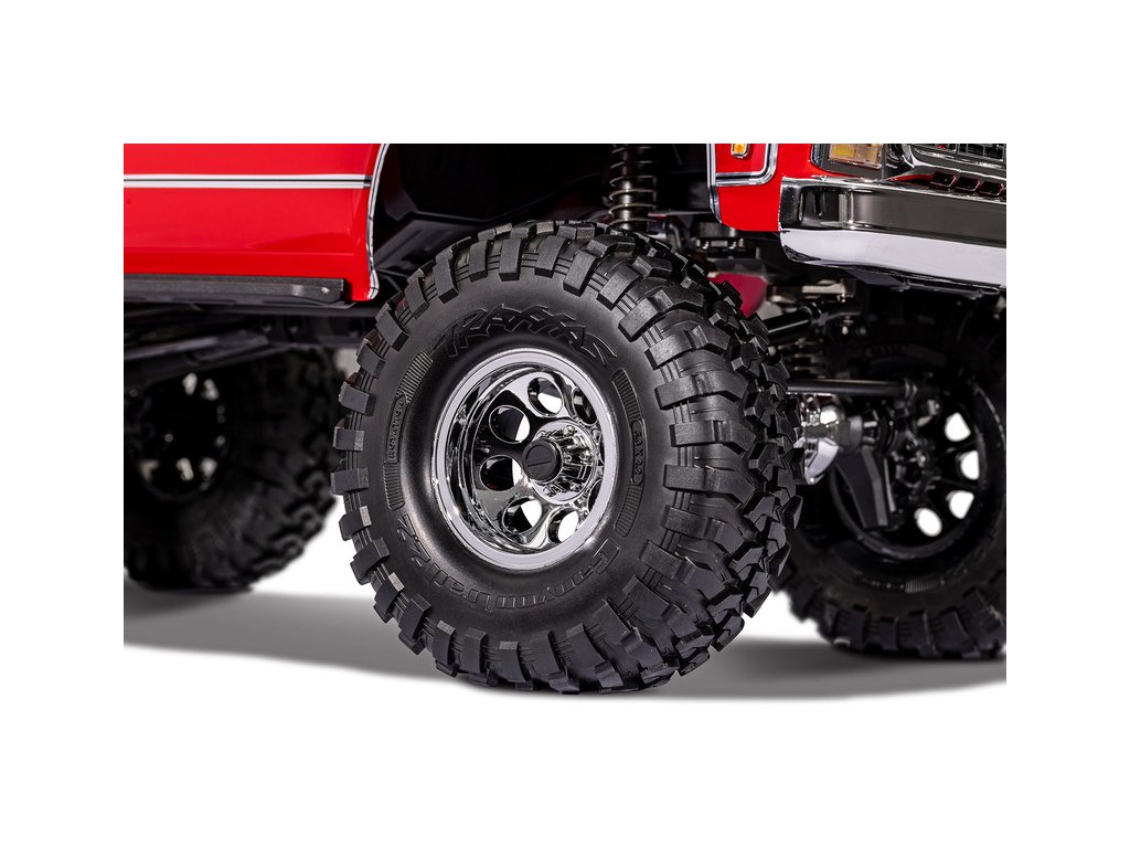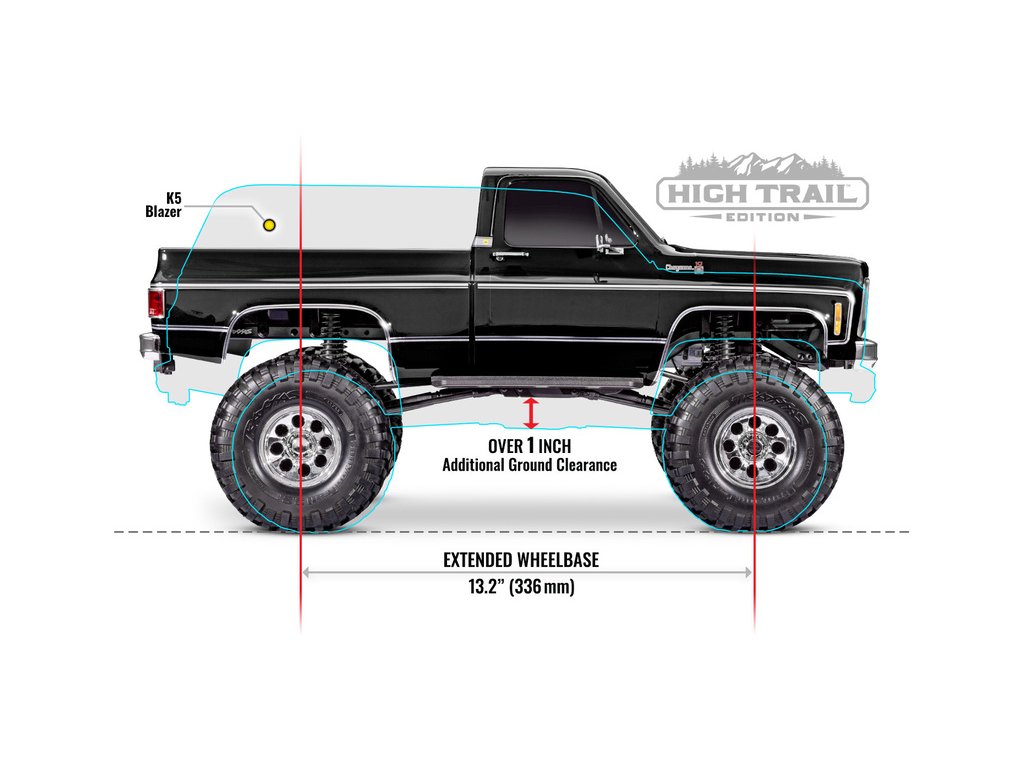 Překonejte nástrahy terénu stylově s RC modelem auta Traxxas TRX-4 vybaveným detailní licencovanou karoserií Chevrolet K10 Cheyenne z roku 1979. Osvědčené šasi TRX-4 je nově továrně vybaveno sadou vyššího zdvihu, která přidává navíc 2.5 cm světlé výšky. Díky tomu mohly být na model osazena větší maketová kola 2.2". V kombinaci s novým delším rozvorem 336 mm, je Chevrolet K10 1979 mnohem stabilnější a překoná náročnější terénní překážky.