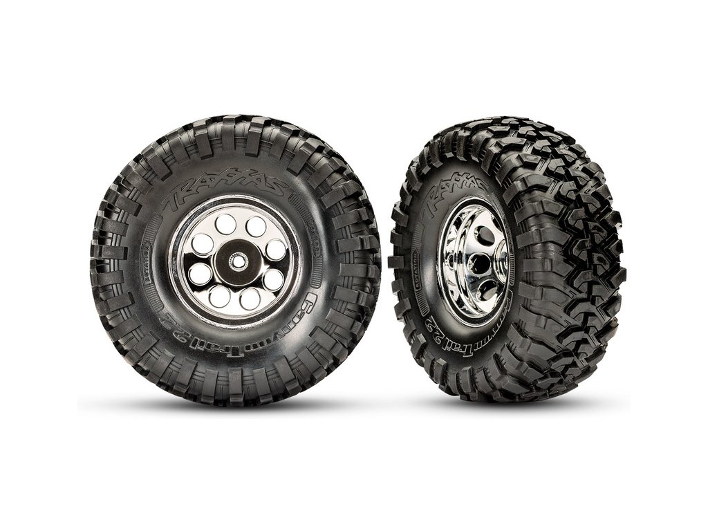 Velké pneumatiky Canyon Trail z extra měkké směsi S1 jsou nalepeny na replice originálních chromovaných kol 2.2" s osmi otvory a krytkou středového náboje. Unašeč kol má 12 mm.