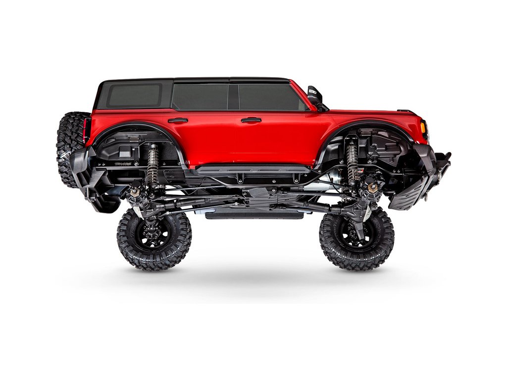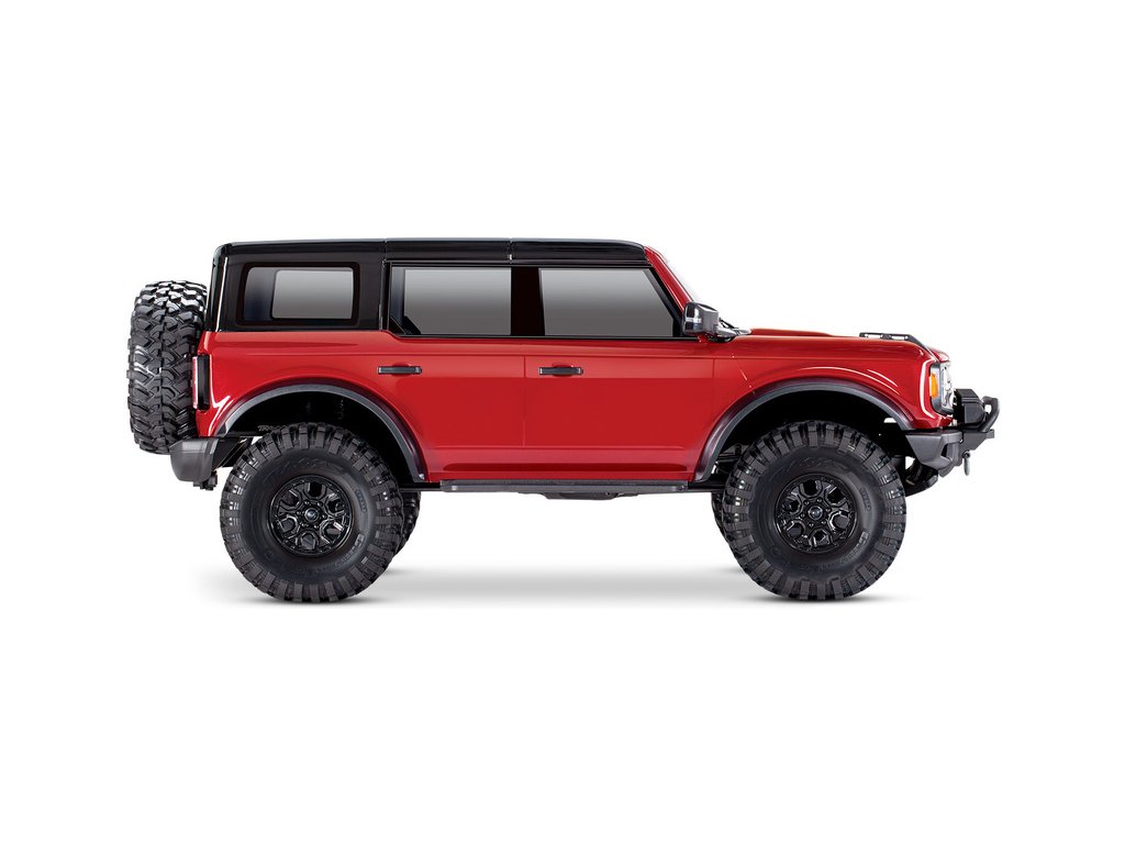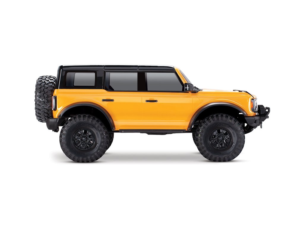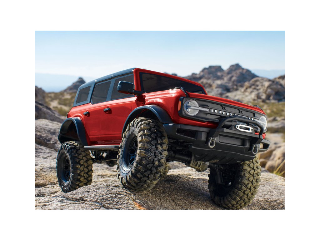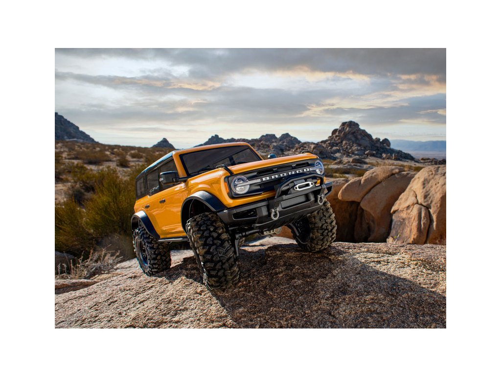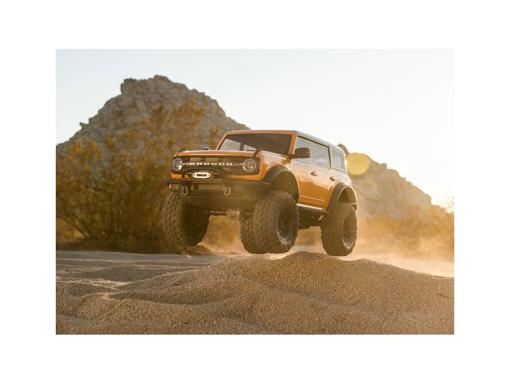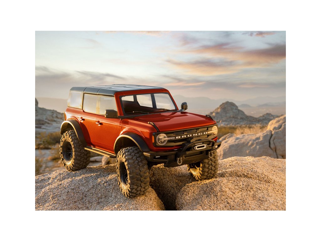 Americká legenda je zpět v novém moderním kabátě. Po 25 let se vrátil Ford Bronco jako nejvýkonnější off-road model této značky a jedno z nejvyhledávanější amerických SUV. Traxxas převedl ducha této ikony do svého auta na dálkové ovládání. Na osvědčeném šasi TRX-4 je instalována zcela nová licencovaná karoserie Fordu Bronco 2021. Karoserie je nově bez-sponková. Krásné křivky detailní karoserie s čirými okny, sklopnými zrcátky, stěrači, klikami a rezervním kolem, již neruší sloupky se sponkami. Karoserie je také nachystána na montáž originálního osvětlení Pro Scale (prodává se samostatně), se všemi funkcemi jako reálné auto (funkční směrovky, brzdová světla, zpátečka, různá intenzita světlometů, koncová světla).