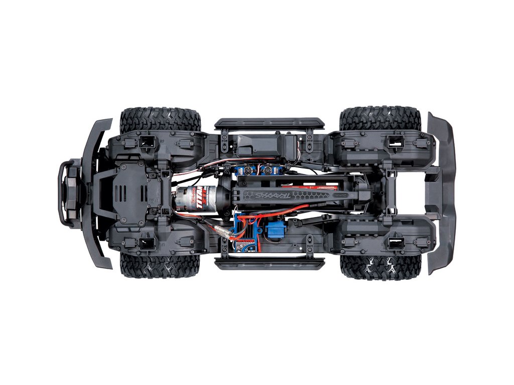 Šasi TRX-4 je postaveno z dvou ocelových profilů, které zabezpečují dostatečnou tuhost podvozku. Díky osvědčenému umístění motoru v přední části je zabezpečen dostatečné zatížení předních kol. Akumulátor je umístěn v ose šasi, takže je model přesně vyvážen a při jízdě se nenaklání. Šasi je promyšleno do nejmenších detailů, včetně vedení kabelů a montážních otovorů pro volitelné příslušenství.