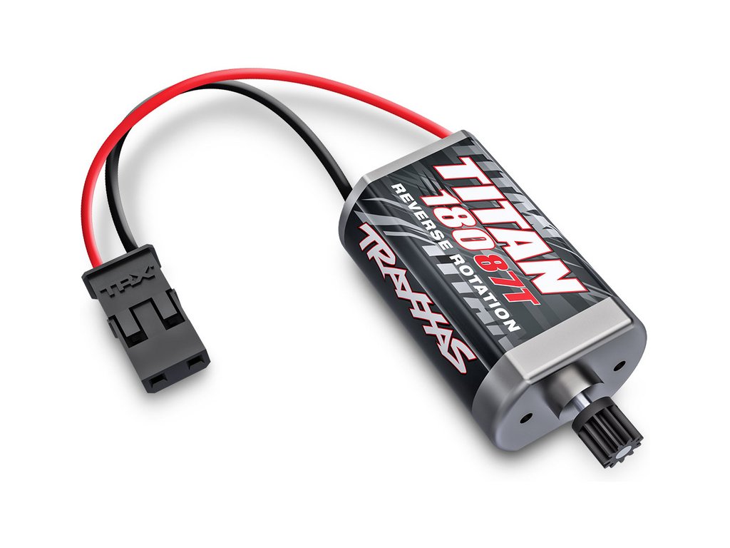 Stejnosměrný motor Titan 180 87T poskytuje široký záběr od nízkých otáček pro technickou jízdu, až po vyšší rychlost pro přejezdy. Pevná mezi-zubová vůle je přesně vymezena a nepotřebuje seřízení.