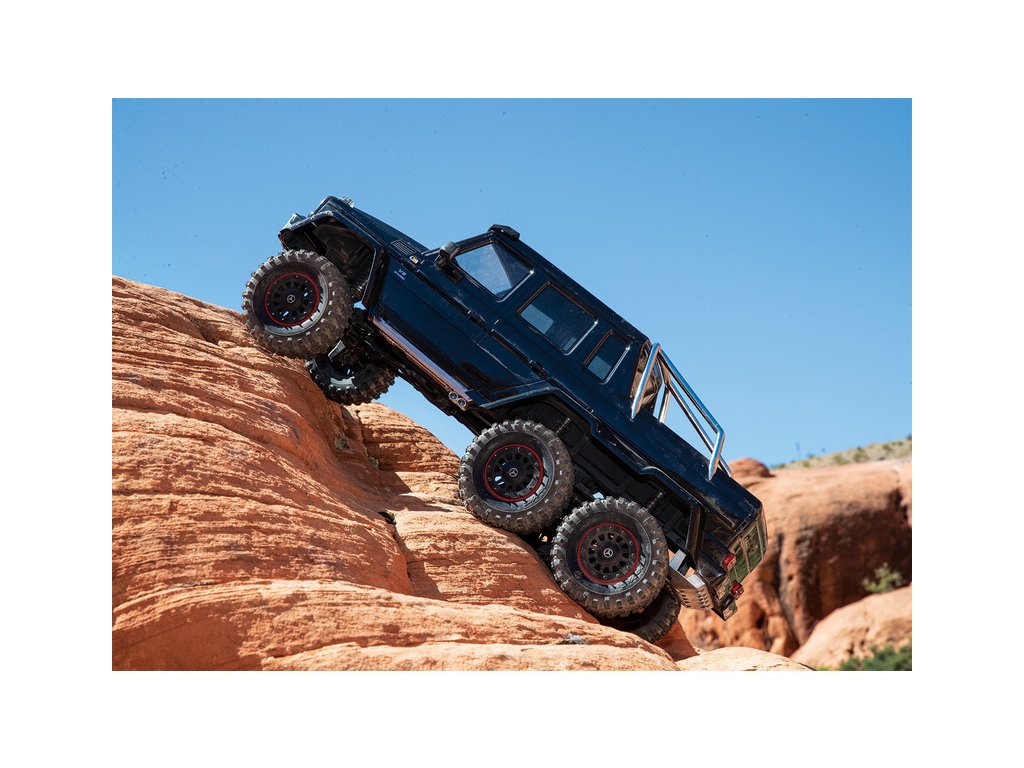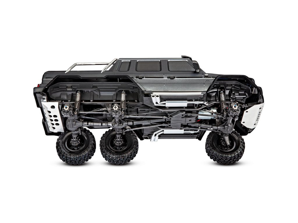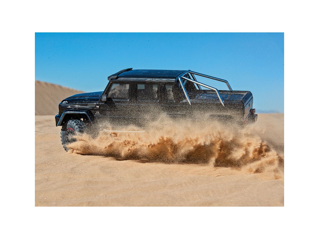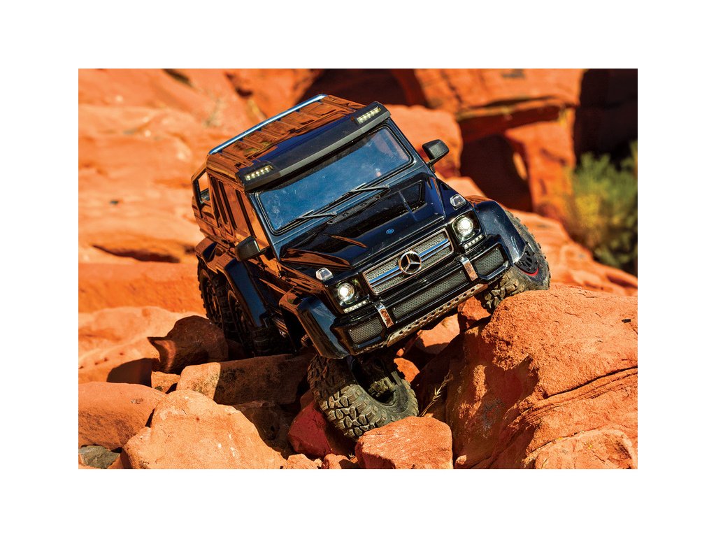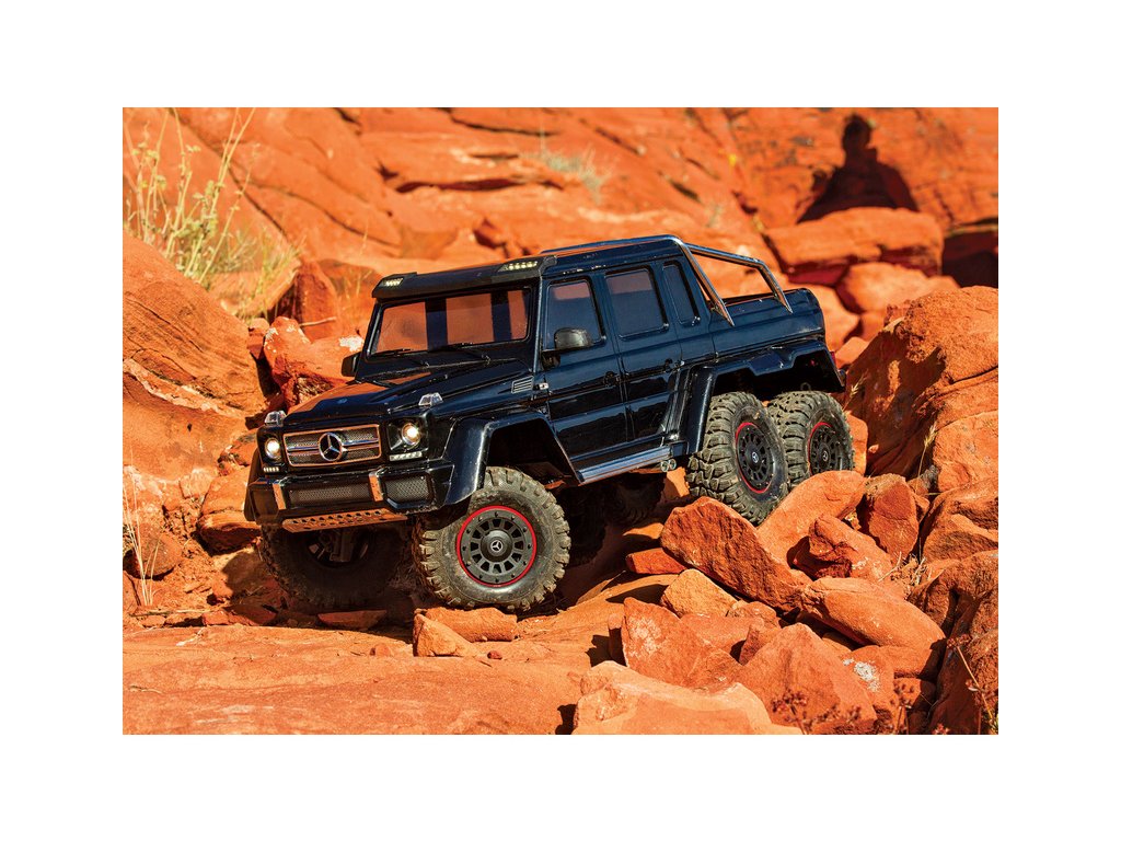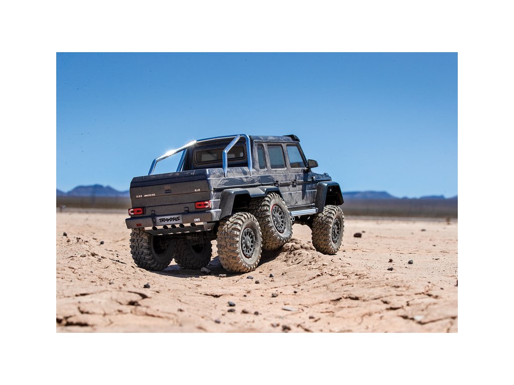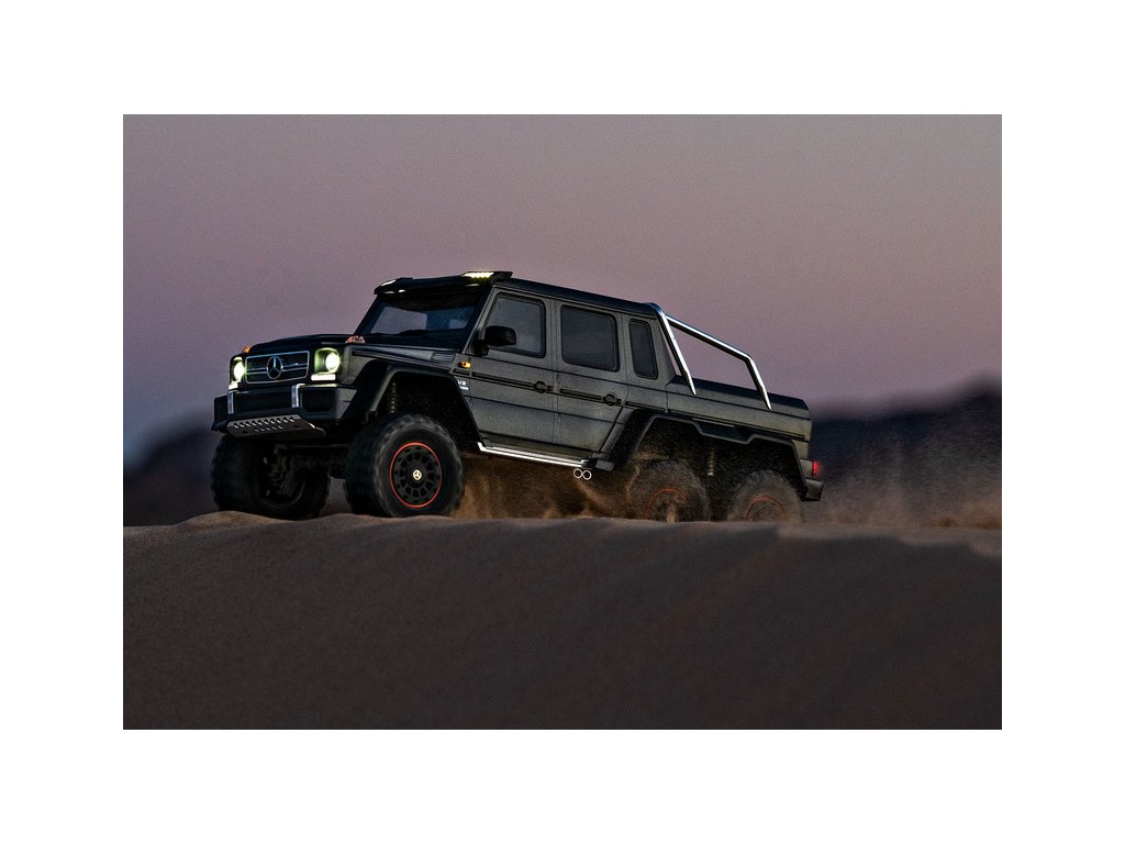 Expediční RC model Traxxas TRX-6 Mercedes G 63 6x6, je postaven na šasi TRX-4. Všechny přednosti toho šasi, jako jsou portálové nápravy, čtyřbodové zavěšení, dálkově ovládané diferenciály, dálkově ovládaná dvourychlostní převodovka, vysoký úhel zatáčení kol a další, byly zachovány a navíc byla přidána další náprava. Unikátní náhon 6x6, tak bude v terénu nepřekonatelný. Výborné zpracování podtrhuje bezsponková karoserie pro rychlou a snadnou výměnu akumulátoru. Věrně zpracovaná karoserie zachovává všechny detaily, včetně množství chromovaných dílů a čirých oken, která dotvářejí 3D vzhled RC modelu.