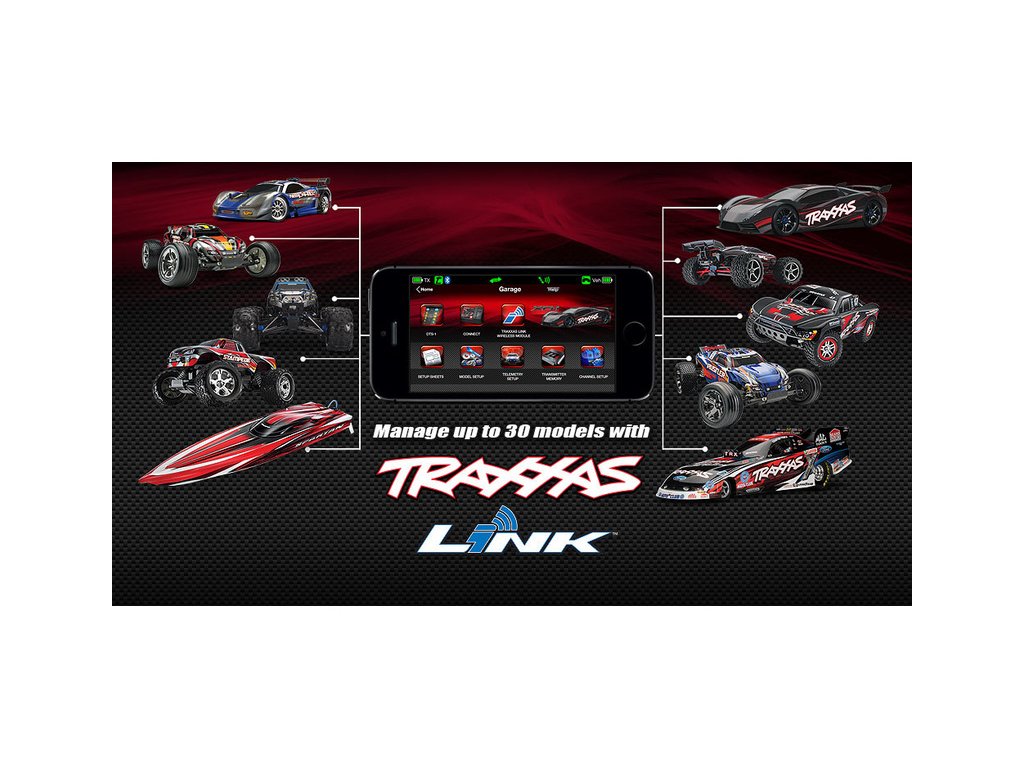 Traxxas Link zjednodušuje organizaci ve vaší kolekci aut. S Traxxas Link už nemusíte zkoušet a pamatovat si, který model s vysílačem máte spárován. Stačí si vybrat model a začít se bavit. Traxxas Link rozpozná model a vybere nastavení, které jste naposled uložili. Tovární nastavení pro všechny modely Traxxas jsou předem naprogramovány tak, že přidat nový model Traxxas do vašeho vysílače je hračka.