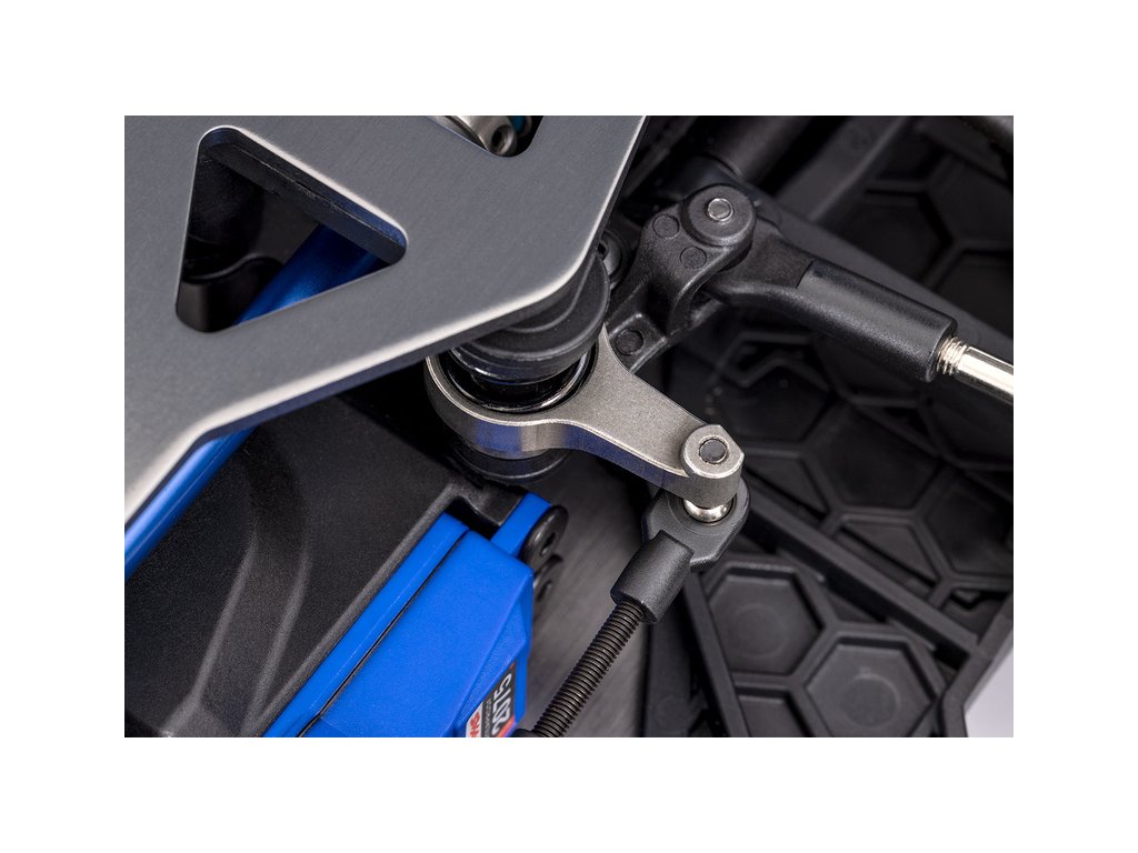 K řízení je určeno Digital High-Torque servo 2075 a dvojitý servo-saver Dual-Bellcrank, který chrání celý mechanizmus v případě nárazu. K seřízení odklonu a sbíhavosti slouží pevné 4 mm ocelové napínáky. Vše je již nastaveno a seřízeno, nápravy lze snadno nastavit upravit geometrii podle vlastní potřeby. Klíčové díly závěsů kol jsou vyrobeny z hliníkových slitin.