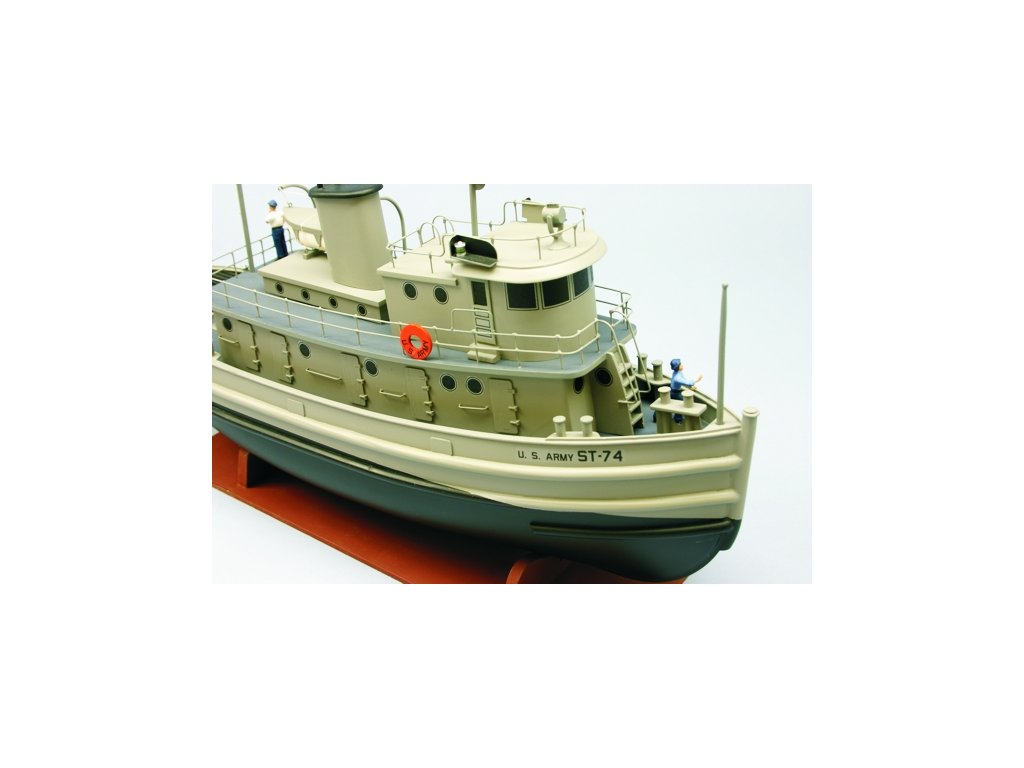 Během II. světové války US Army používala velké množství plavidel nezbytných k přepravě a zásobování jednotek vyloďovaných v Severní Africe, Evropě i Tichomoří. Pro vlečení lodí v přístavech a přeplavu nákladních a zásobovacích vlečných člunů sloužily malé remoréry označované "ST" (Small Tug = malý remorkér). Stavebnice Dumas vám nabízí model jednoho takového remorkéru, který měl délku 74 stop.
