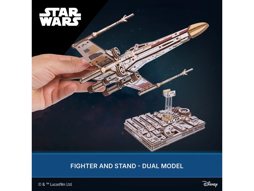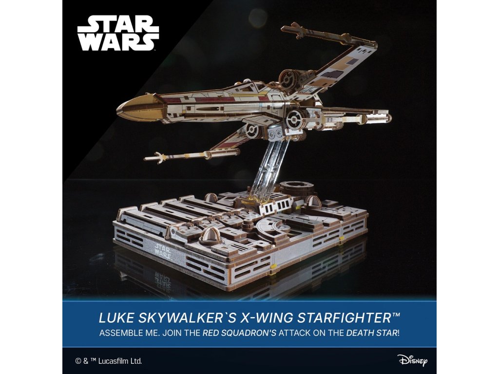 Postavte si legendární stíhačku X-Wing, ve které létal Luke Skywalker v době svého jedi výcviku, i po něm. Stíhačka má křídla S-foil, která se otevírají do útočné polohy, otevírací kokpit, poklop s tlačítkem R2-D2, věrného droida Skywalkera. Skládačka má mechanický podstavec ve stylu exteriéru Hvězdy smrti s akrylovou magnetickou nohou.