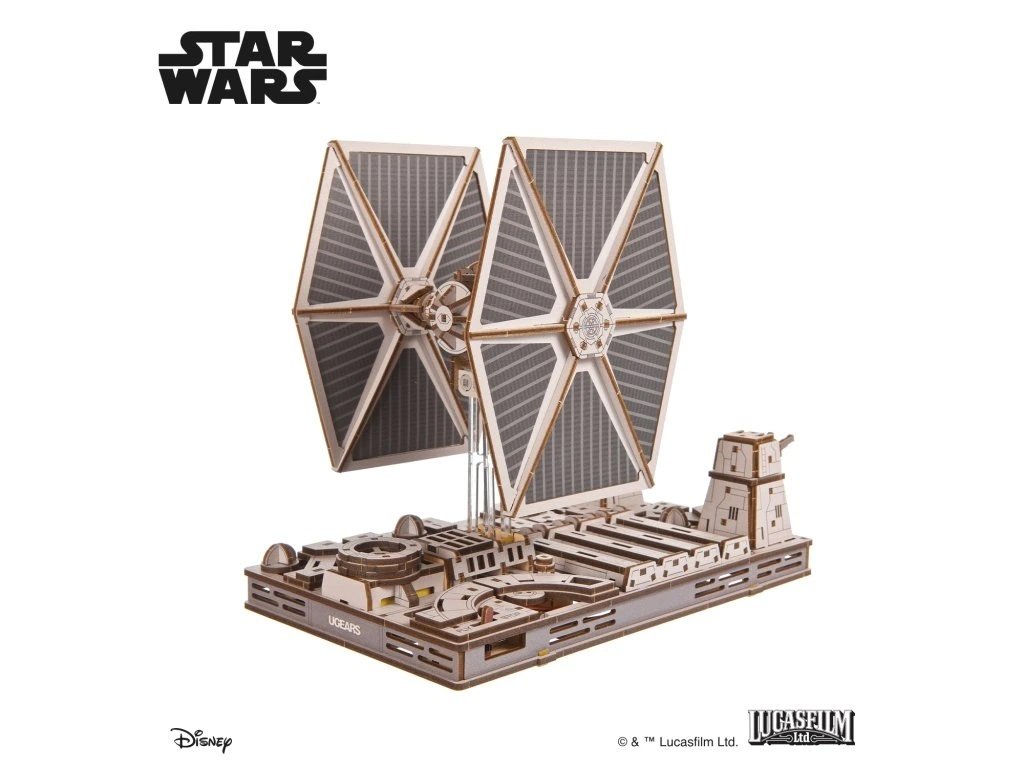 Model z barevné překližky stojí na podstavci, který připomíná exteriér Hvězdy smrti, v něm je mechanismus, který stíhačkou houpe. Pohyby připomínají letové manévry, přesně jako ve Star Wars filmech. Model stíhačky lze od podstavce oddělit pomocí magnetu. Fanoušky hvězdných válek jistě nadchnou realistické funkce mechanické skládačky. Dvě laserová děla se pohybují ze strany na stranu a ochrání tak TIE před blížícím se X-Wingem. Kokpit se svrchu otevírá a odhalí detailní interiér, v křídlech se nachází prvky kartonu. Napájeno třemi AA bateriemi nebo pomocí USB-C, toto však není součástí balení.