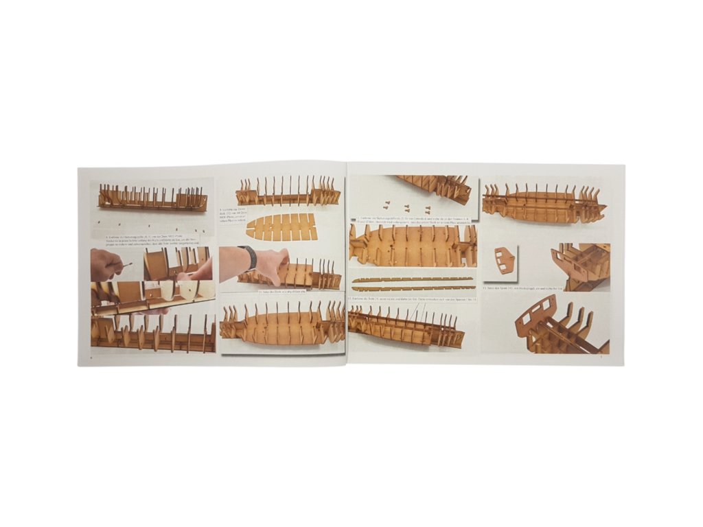 Set obsahuje kompletní sadu výkresové dokumentace modelu v měřítku 1:1 s obrázky jednotlivých detailů. Na výkrese jsou v měřítku nakresleny montážní sestavy, jejich kompletace a to včetně stěžňů a ráhen a způsob vázání lanoví. Postup stavby rámcově upravuje logické sestavení jednotlivých komponentů.