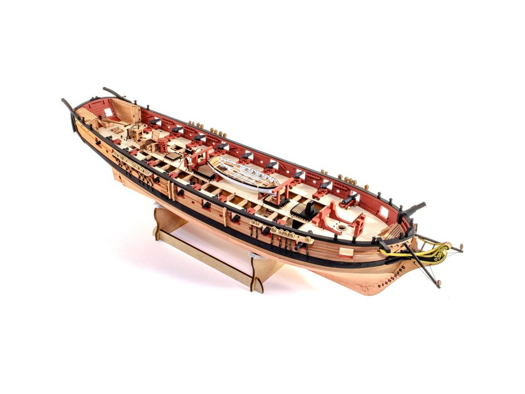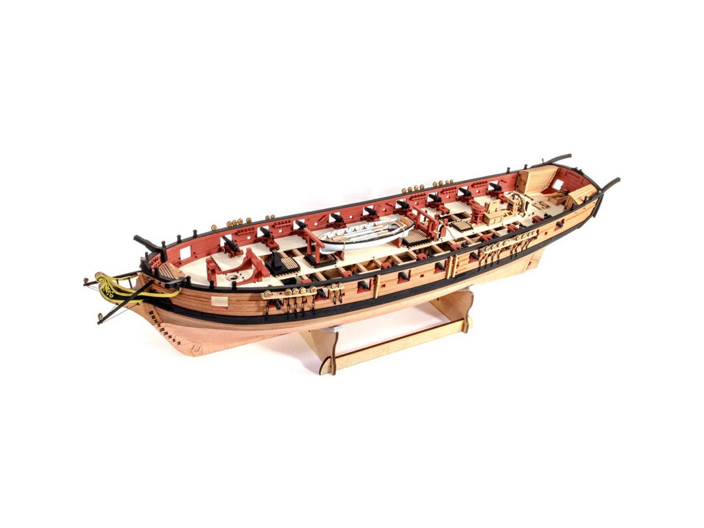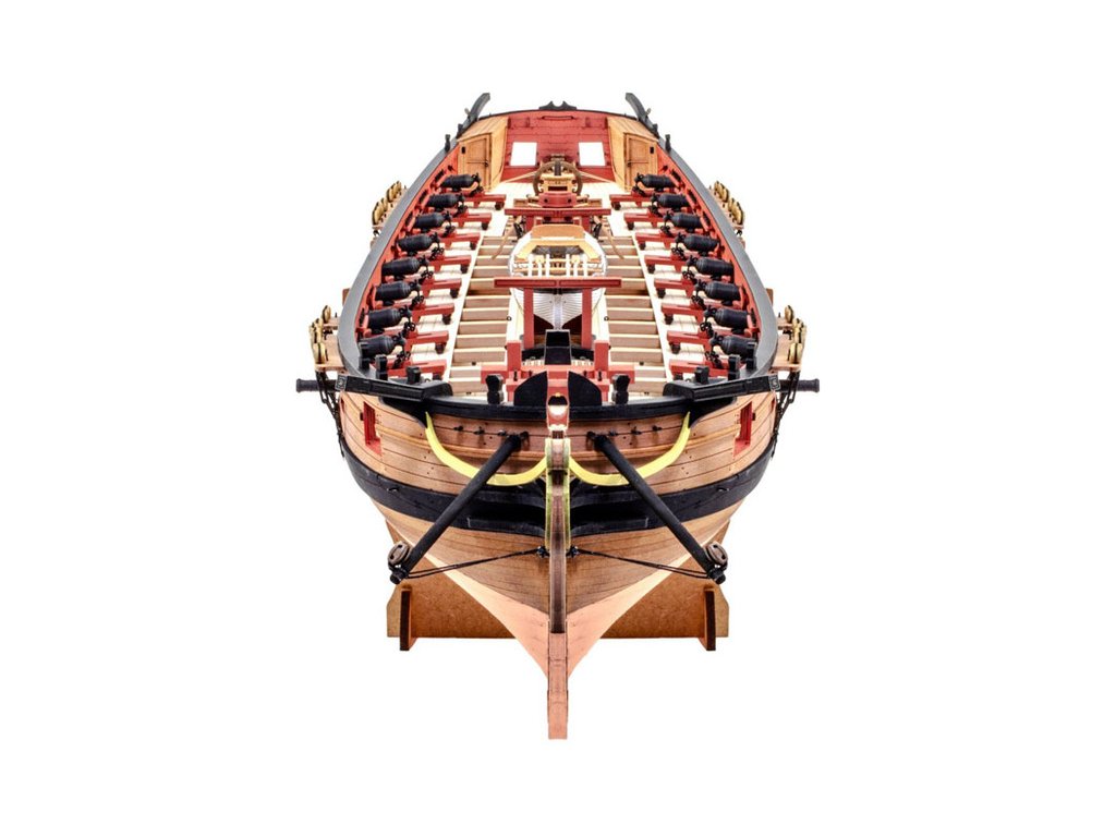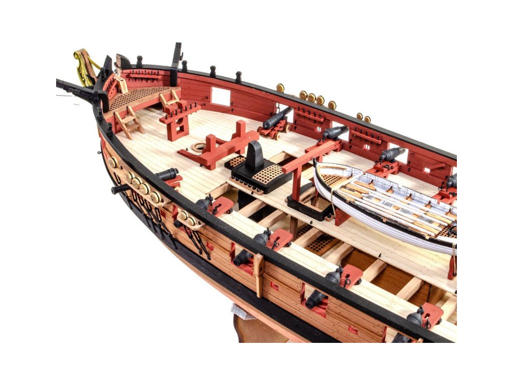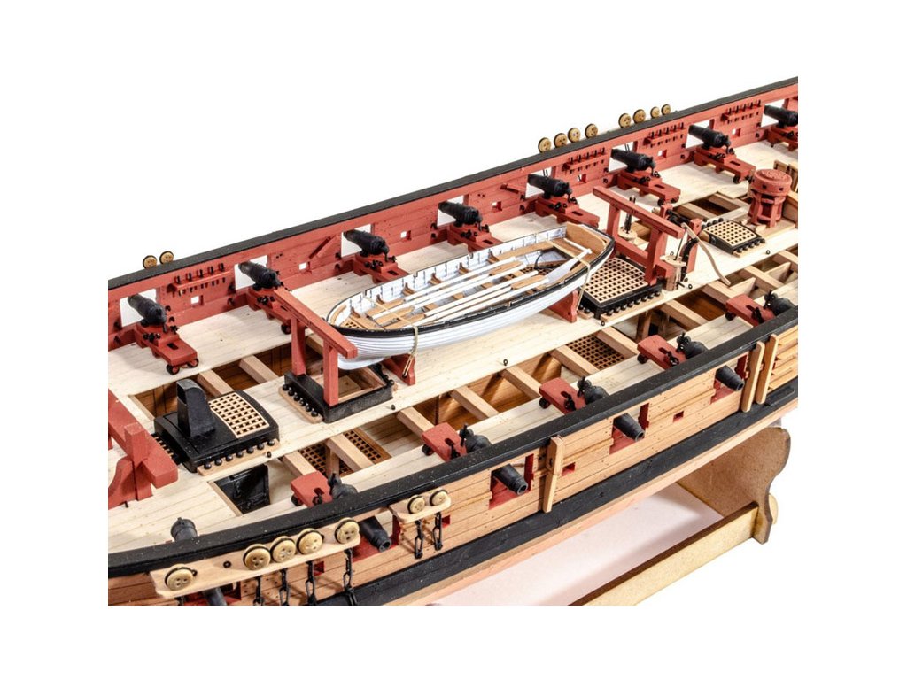 Stavebnice obsahuje také detailně zpracované podpalubí s platformami, kamny a kajutami. Příčné nosníky paluby jsou z hruškového dřeva a přesně odpovídají měřítku i rozteči, takže je možné model sestavit buď s odkrytým pohledem do podpalubí, nebo s kompletně zakrytou horní palubou.