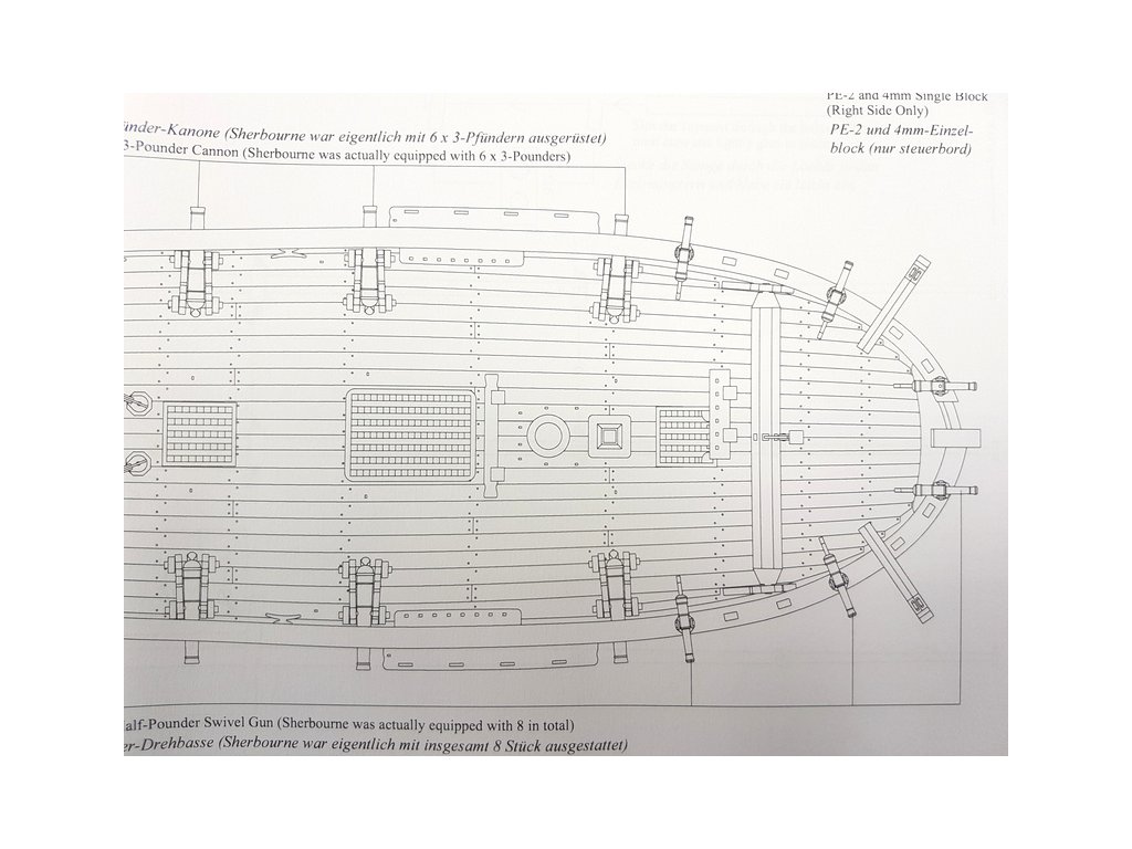 Stavebnice neplovoucího modelu lodi Vanguard Models HM Sherbourne z roku 1763, v měřítku 1:64. V balení jsou díly pro stavbu - laserem řezané díly, lišty, mosazné fotolepy, 3D tištěné díly, lanoví a další. Stavbou Vás provede podrobný návod s obrázky jednotlivých stavebních kroků. Výrobce vynaložil zvláštní úsilí, aby montáž tohoto modelu byla pro mírně pokročilé co nejjednodušší a do návodu zahrnul mnoho podrobných ilustrací. V balení je rovněž výkresová dokumentace v měřítku.