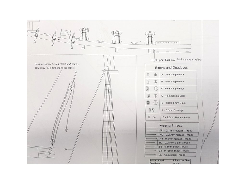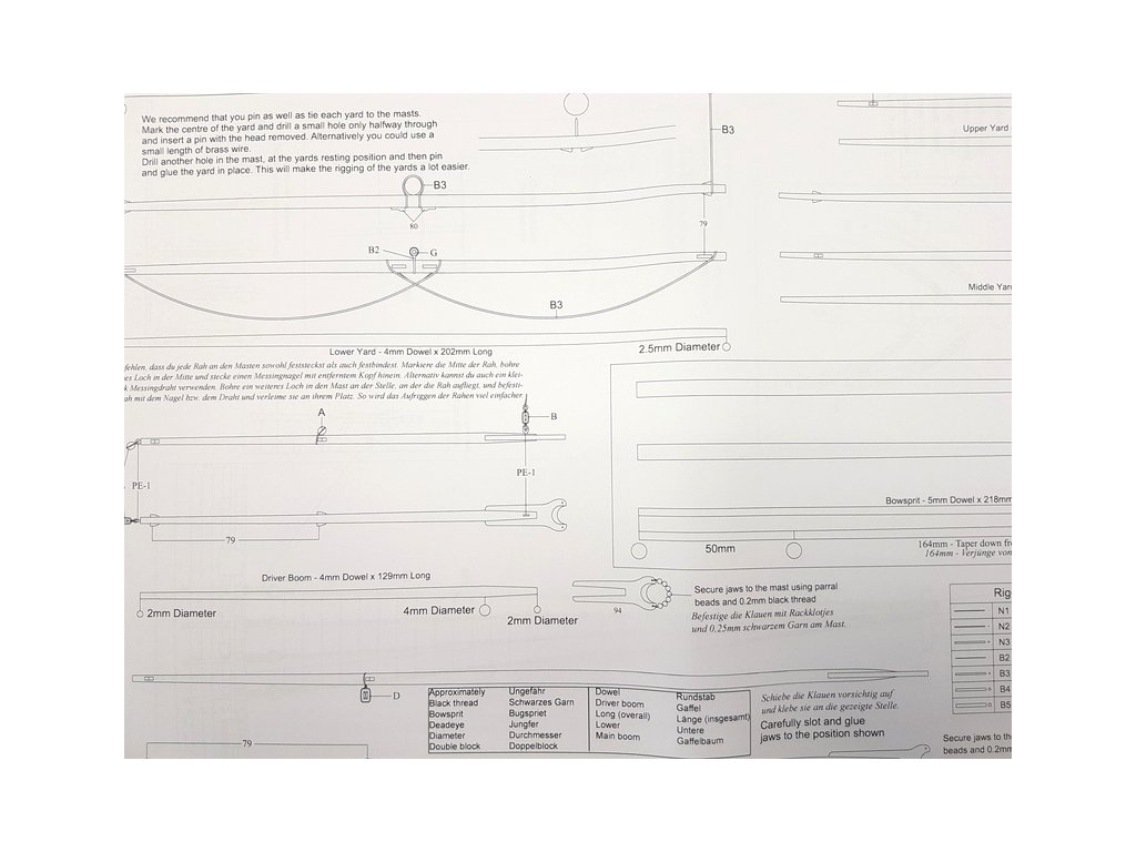 - Komplexní barevný návod spolu s plány, obsahujícími všechny výkresy stěžňů a lanoví