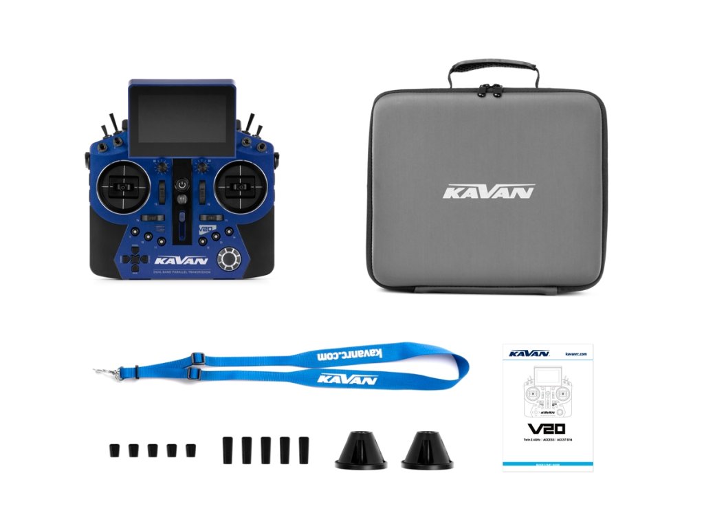 KAVAN V20 je pokročilá 24kanálová RC souprava využívající 2,4GHz simultánní dvoufrekvenční přenosový systém s plnou podporou telemetrie. Pyšní se špičkovou odezvou do 4 ms, a to na vzdálenost až desítky kilometrů. Zvolit můžete i přenosové systémy ACCST D16 nebo ACCESS, rovněž s telemetrií. Spárovat V20 tedy lze s celou řadou přijímačů KAVAN nebo FrSky, ať už telemetrických či nikoliv, s klasickými PWM a S.BUS výstupy.