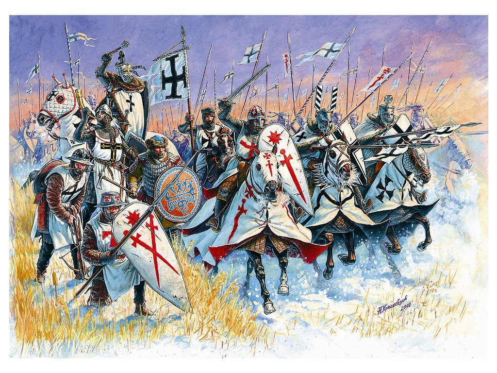 Livonští rytíři založili svůj řád při pobřeží Baltského moře během 13. století a při podrobování baltských kmenů spojili své síly s rytíři německými. Jejich výpadům učinili přítrž nakonec až rytíři a pěšáci z Ruska.