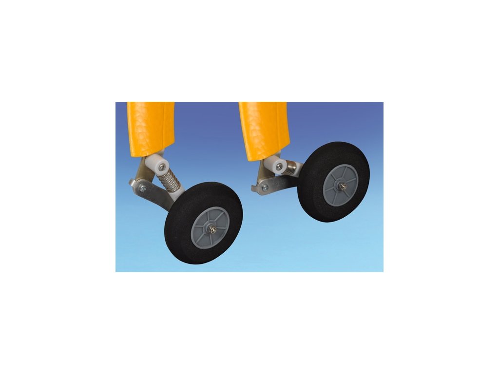 Dvoukolový podvozek s ovládanou ostruhou je duralový se „zalomenými“ odpruženými nohami, lehkými koly a pěnovými maketovými kryty. Ovládána jsou křidélka, vztlakové klapky, směrovka (se spřaženou ostruhou), výškovka a otáčky motoru.