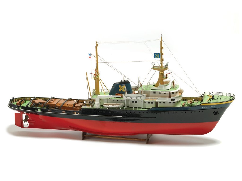 Velký holandský oceánský remorkér Zwarte Zee byl spuštěn na vodu v roce 1963. Má velmi zajímavý pohon – dva turbo diesely MAN o 9000 HP mohou díky důmyslně konstruovaným převodovkám a spojkám společně hnát loď rychlostí až 18 uzlů. Ale v situaci vyžadující vysokou manévrovací schopnost může jeden sloužit pro chod vpřed a druhý pro chod vzad, přičemž přepínání je prakticky okamžité. Stavebnice v měřítku 1:90 je určena pro mírně pokročilé lodní stavitele.